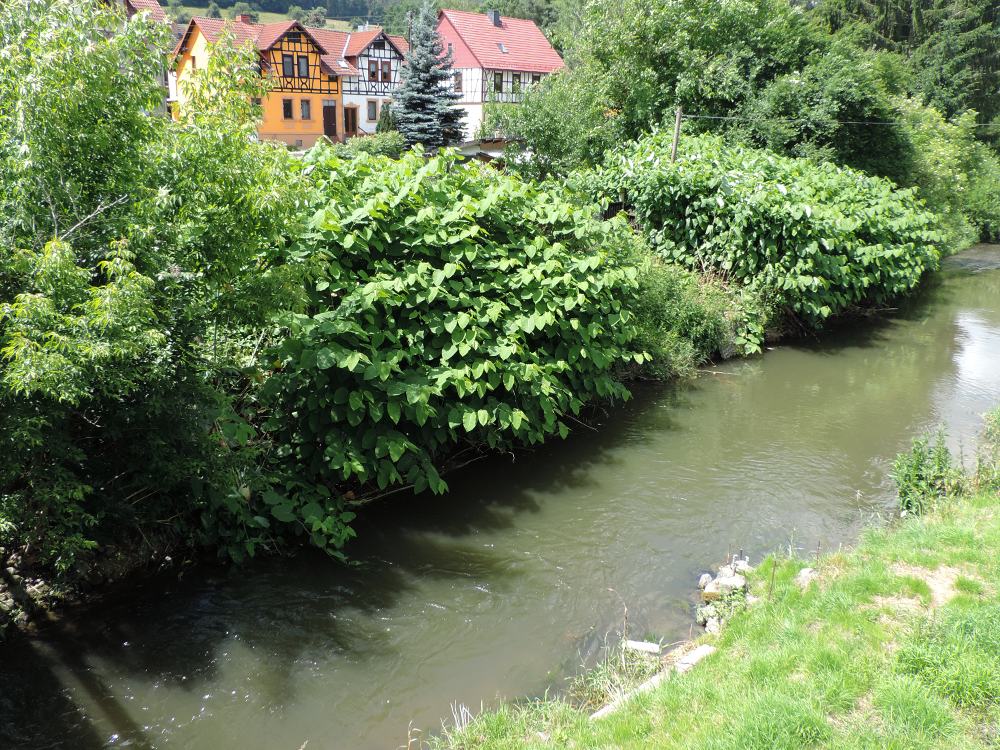 2021 ca. 200m Japanischer und Sachaliner Staudenknöterich (Brücke führt von Oppurg nach Oberoppurg) |